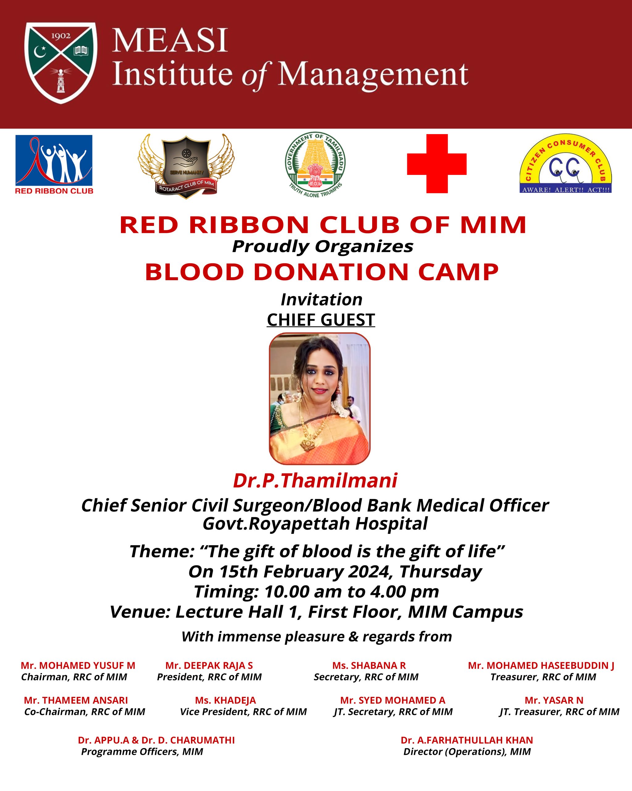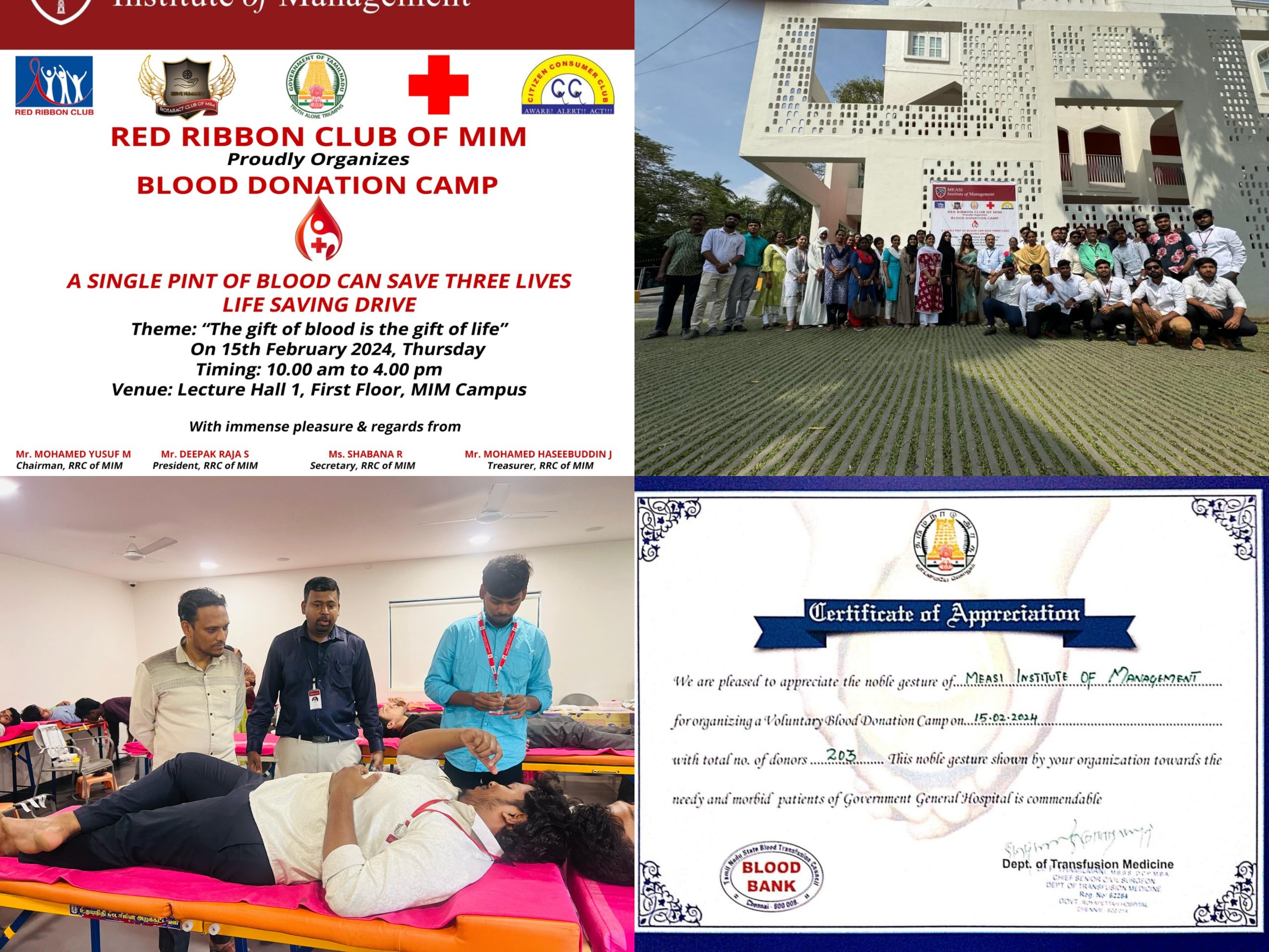 Red Ribbon Club is a movement started by the Government of India in schools and colleges through which, students will spread awareness over HIV / AIDS. It envisages to instil charity mind among all the students to extend their able help towards developing healthy life styles, donating blood to all the needy by promotion of Regular voluntary blood donation. Red Ribbon Club (RRC) is a comprehensive promotional and preventive intervention to enhance voluntary blood donation as well as mainstream HIV & AIDS prevention, care & support and treatment impact, mitigation, stigma reduction, among the youth in educational institutions. It will also prepare and promote youth peer educators within and outside the campuses. Reaching youngsters at an impressionable age before they become sexually active can lay the foundation for a responsible lifestyle, including healthy relationships and safe sex habits. NACP reaches out to youth through specially developed Youth Education Programme focused primarily on prevention through awareness building. Red Ribbon Club (RRC) is a voluntary on campus intervention is being implemented in the higher Educational institutions, aiming at heightening their risk perception and preventing HIV as well as promoting voluntary blood donation among youth between the age of 17-25 yrs. with Department of Higher Education, technical support from TANSACS.The Red Ribbon Club of MEASI Institute of Management is an affiliated club to Tamil Nadu State AIDS Control Society which was started on 23rd October 2018.